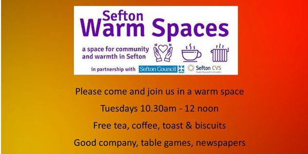 During the current cost of living crisis, we are supporting the Sefton Warm Spaces initiative. Everyone welcome!